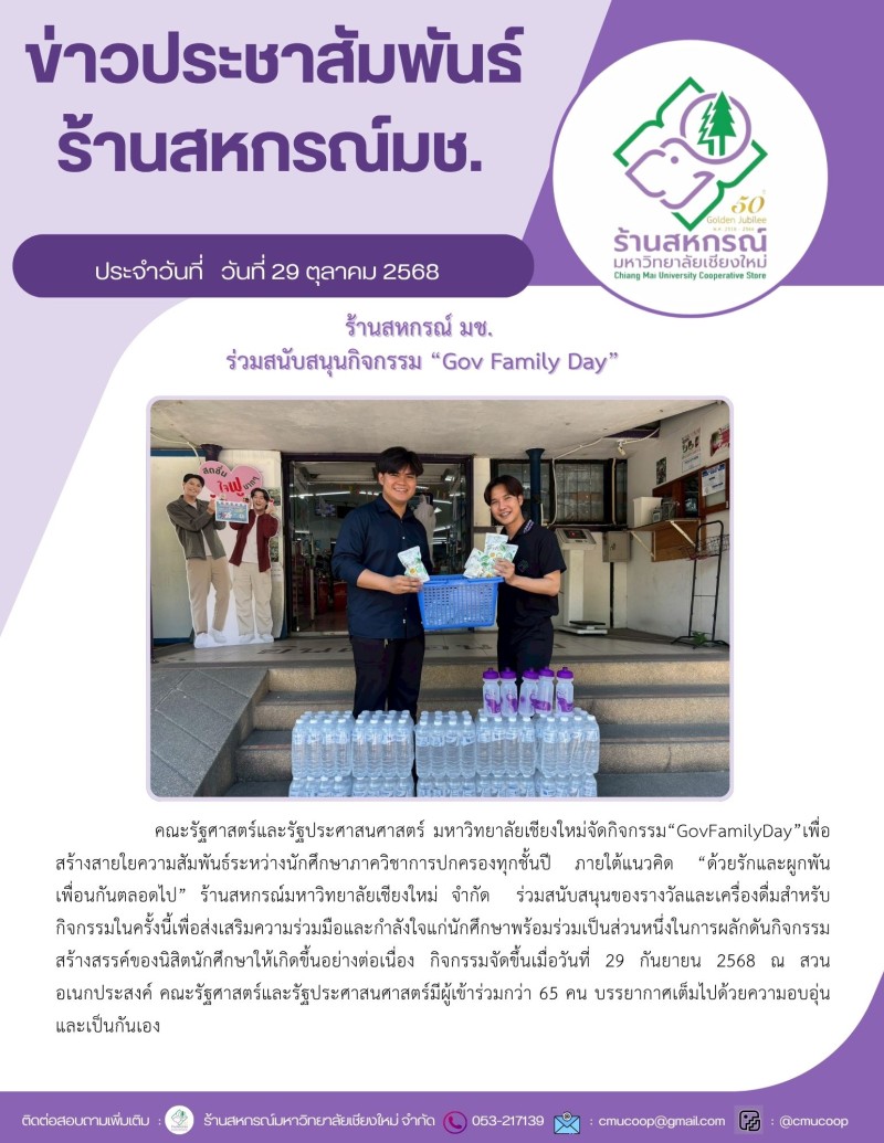 ร้านสหกรณ์ มช. ร่วมสนับสนุนกิจกรรม “Gov Family Day”