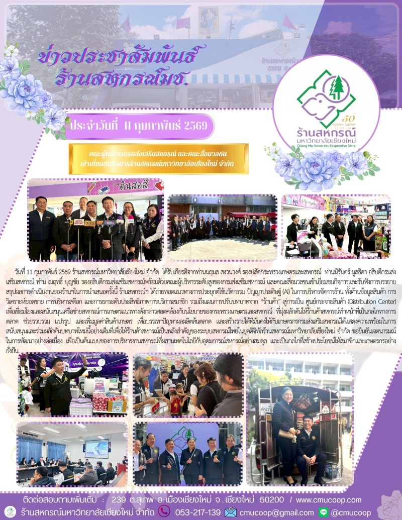คณะผู้บริหารกรมส่งเสริมสหกรณ์ และคณะสื่อมวลชน เข้าเยี่ยมชมกิจการร้านสหกรณ์มหาวิทยาลัยเชียงใหม่ จำกัด