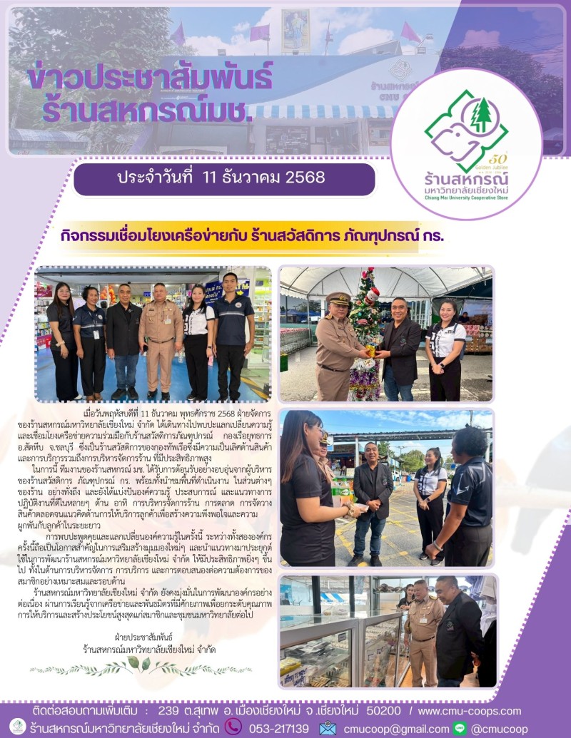 ร้านสหกรณ์ มช. ร่วมสนับสนุนสิ่งของเพื่อช่วยเหลือผู้ประสบอุทกภัยภาคใต้